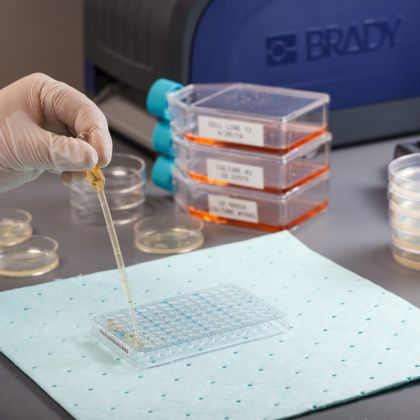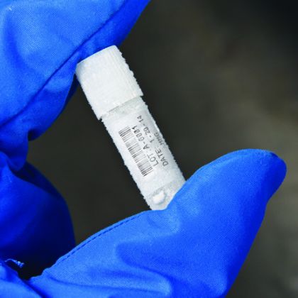 Etykieta THT-152-499-1.5-SC do zastosowań laboratoryjnych. Etykiety z materiału B-499 do identyfikacji próbek świetnie radzą sobie w identyfikacji butelek i kolb. Te etykiety z gęstej nylonowej tkaniny są łatwe w użyciu, a dodatkowo są niezwykle elastyczne i można je łatwo owinąć wokół zaoblonych pojemników na próbki. Etykiety te nie odklejają się i pozostają czytelne nawet w przypadku przechowywania próbki w zamrażarce, w ciekłym azocie lub po podgrzaniu w autoklawie.